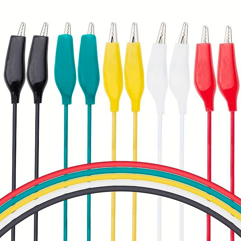 Consiste en un cable con un extremo equipado con una pinza caimán o cocodrilo, que se utiliza para realizar conexiones temporales y seguras en circuitos eléctricos y electrónicos.