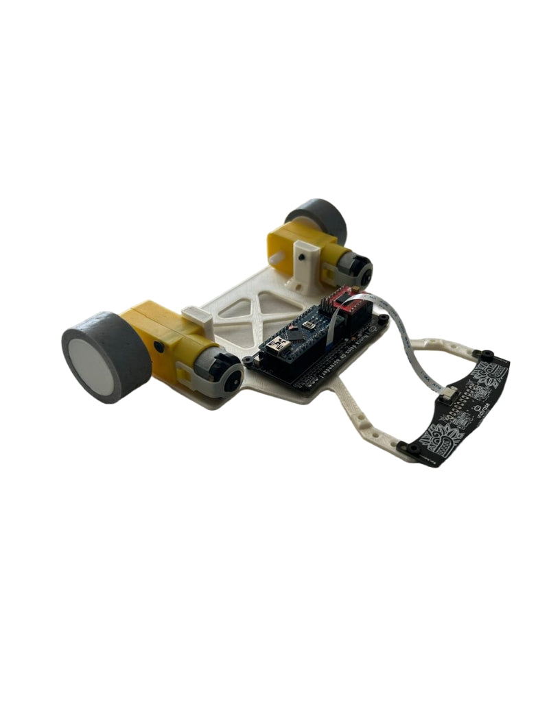 Nuestro chasis* de seguidor de líneas esta elaborado con los estándares requeridos para participación en eventos de robótica de competencia. Está fabricado en impresión 3D para una mayor rigidez durante las competencias y su peso ligero permite que el seguidor de líneas se mueva con mayor rapidez.