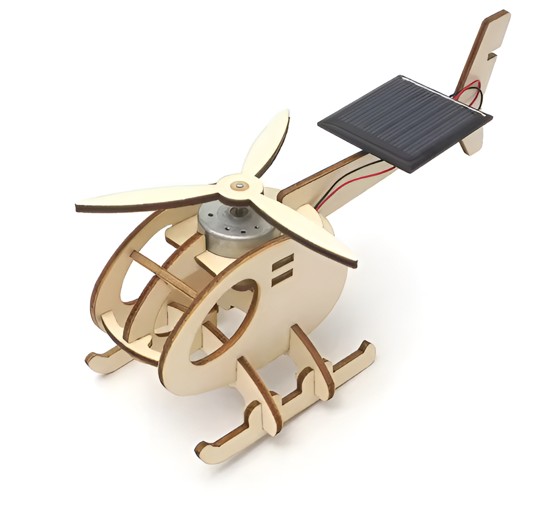 Este kit construye un helicóptero solar que gira, usando energía renovable. Ideal para proyectos escolares, se adapta perfectamente a la enseñanza basada en proyectos y metodología STEAM. Producto de alta demanda en escuelas que inician con la integración de la robótica y tecnología.