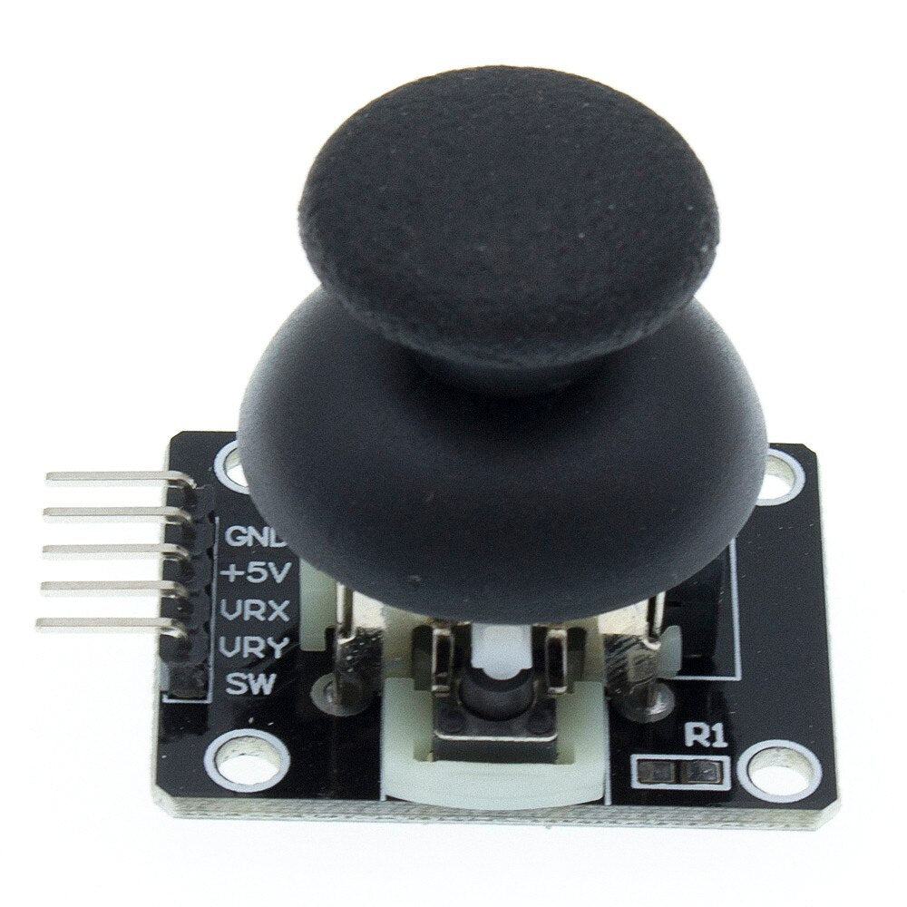 Interfaces de conexión: Se conecta a un microcontrolador u otro dispositivo electrónico a través de pines o cables. Generalmente utiliza una interfaz analógica para los ejes X e Y, y una interfaz digital para el botón pulsador.