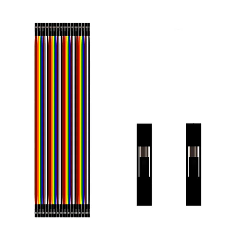 Los jumpers de 20 cm son cables flexibles utilizados para realizar conexiones eléctricas entre componentes en placas de circuito impreso (PCB) o protoboards.
