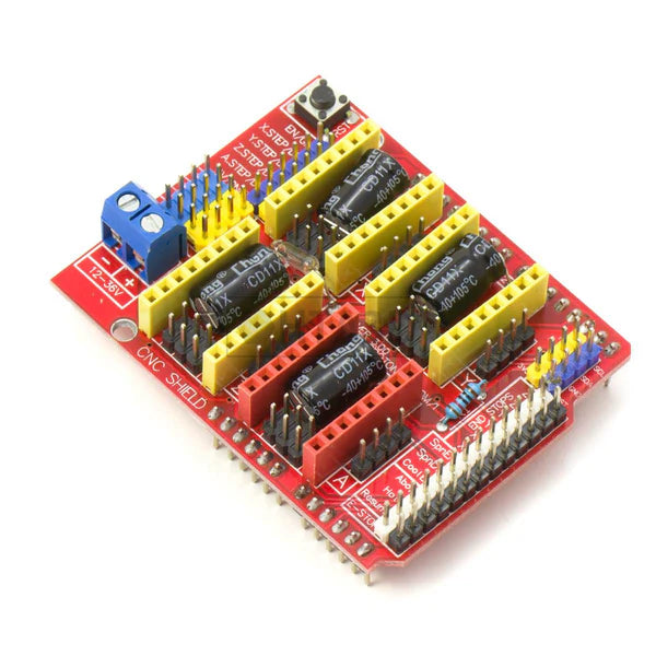 La tarjeta CNC Shield es un componente diseñado para controlar motores paso a paso en sistemas CNC (Control Numérico Computarizado) y en impresoras 3D.